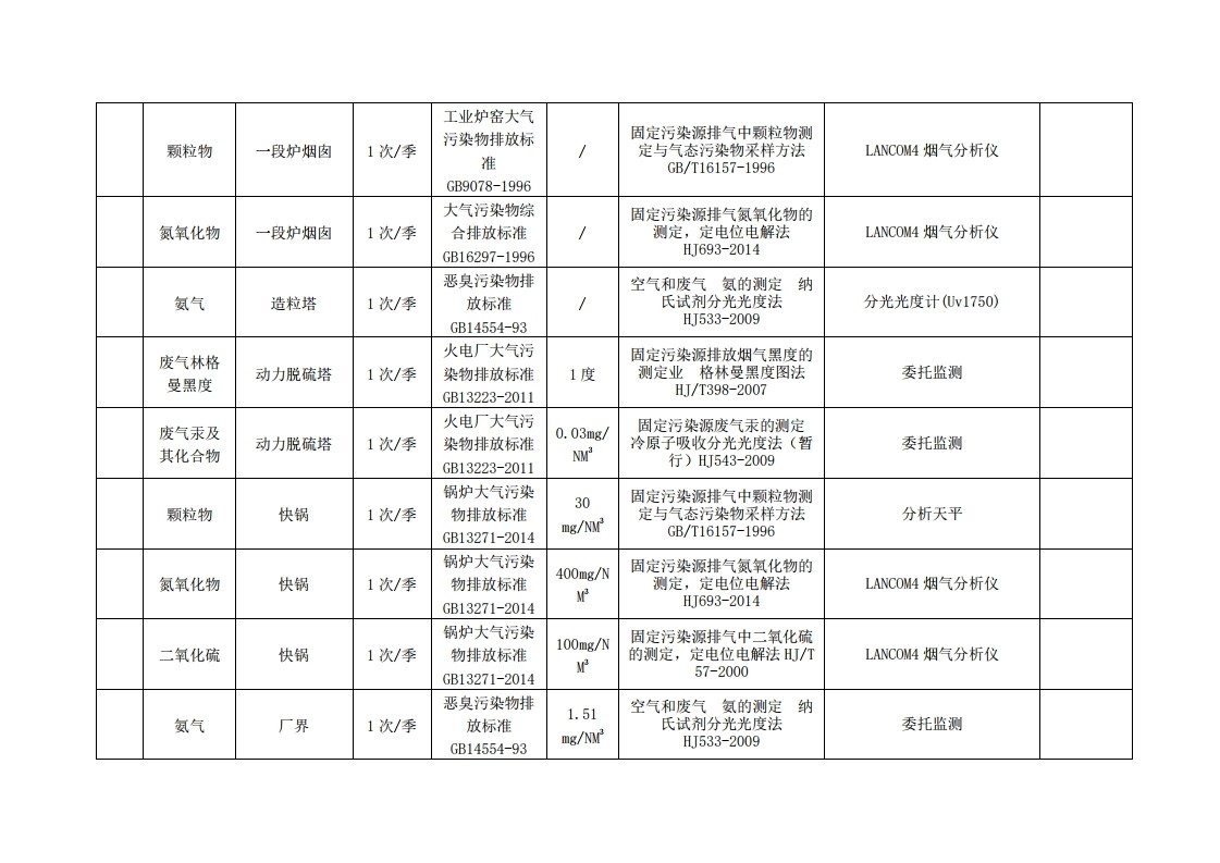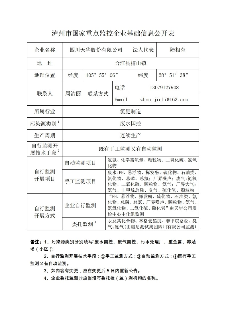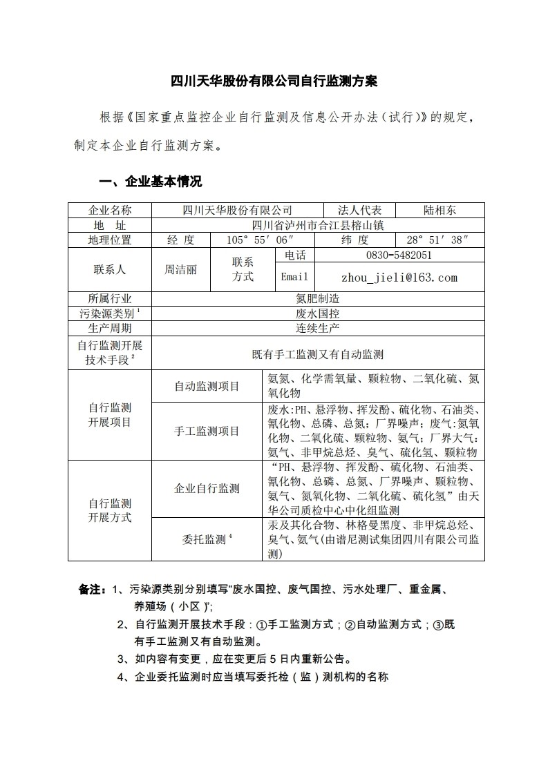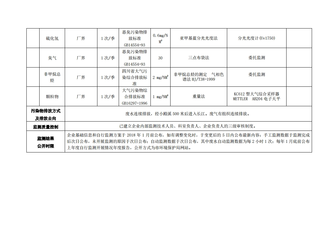 四川天華股份有限公司2018年自行監(jiān)測方案