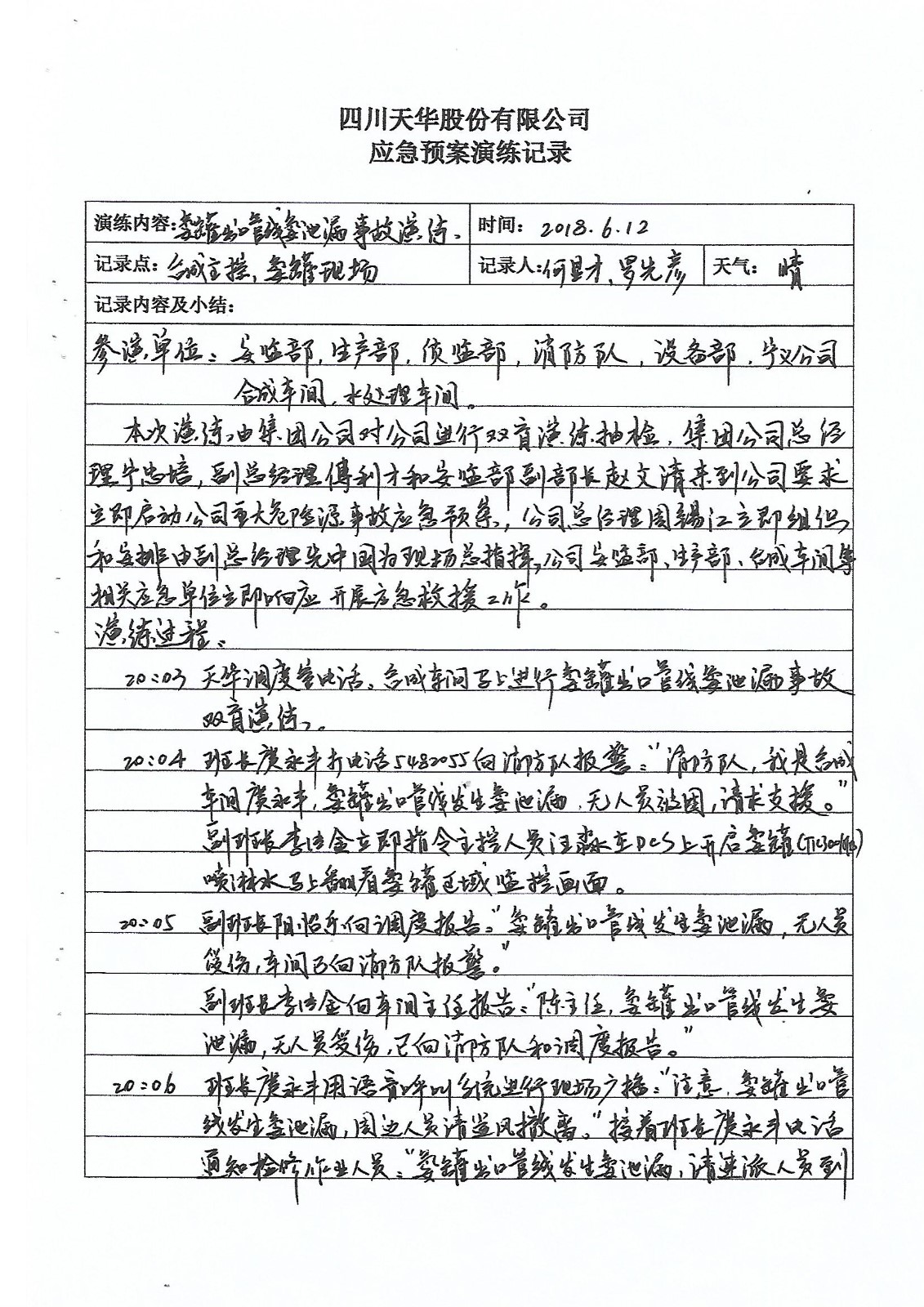 合成氨車間雙盲應急演練