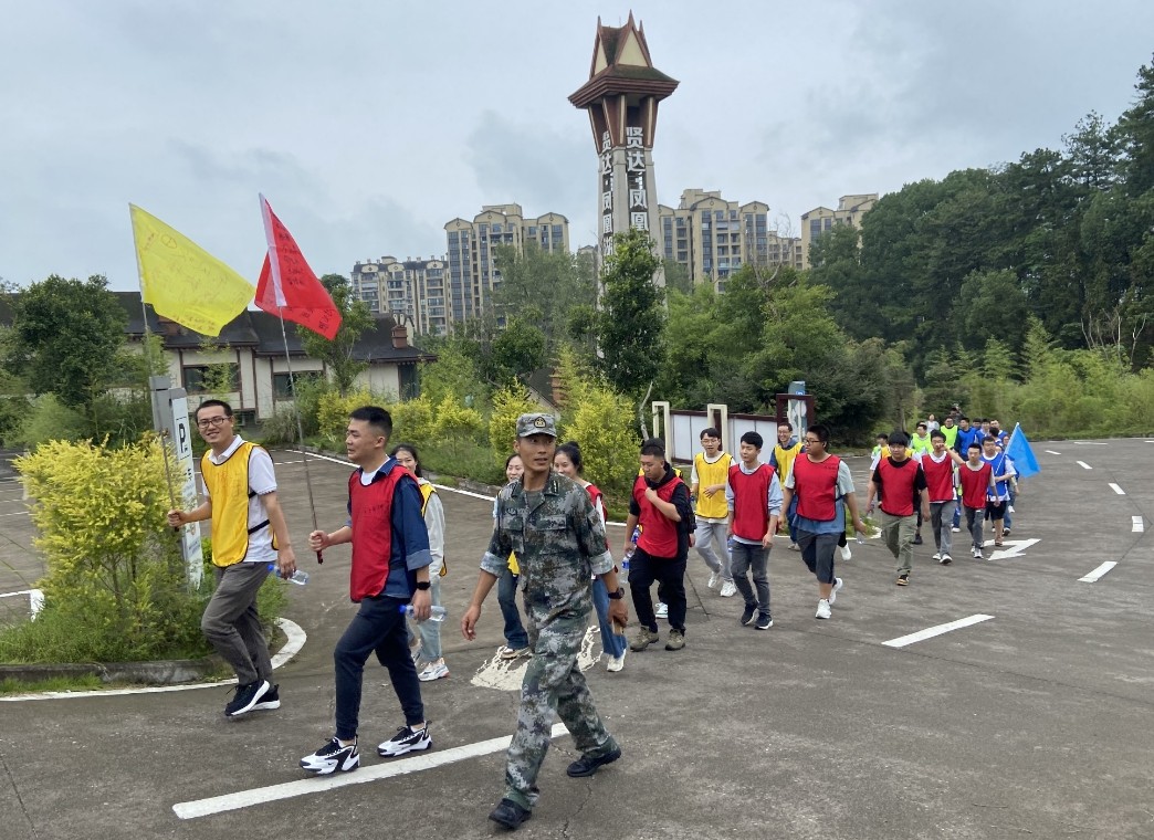 午休后,大家冒著綿綿細雨,進行徒步拉練活動,開啟一場體力與耐力的較量。一路上隊員們比意志、比耐力、比體能,相互鼓勵。